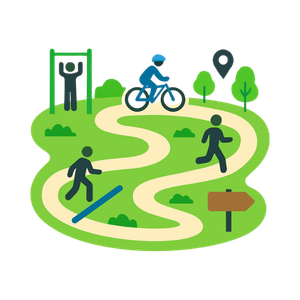 - Complexe multi-activités à définir en commission participative : city stade, parcours de course à pied, skate park avec pump track inclus, boulodrome, parcours de santé arboré.